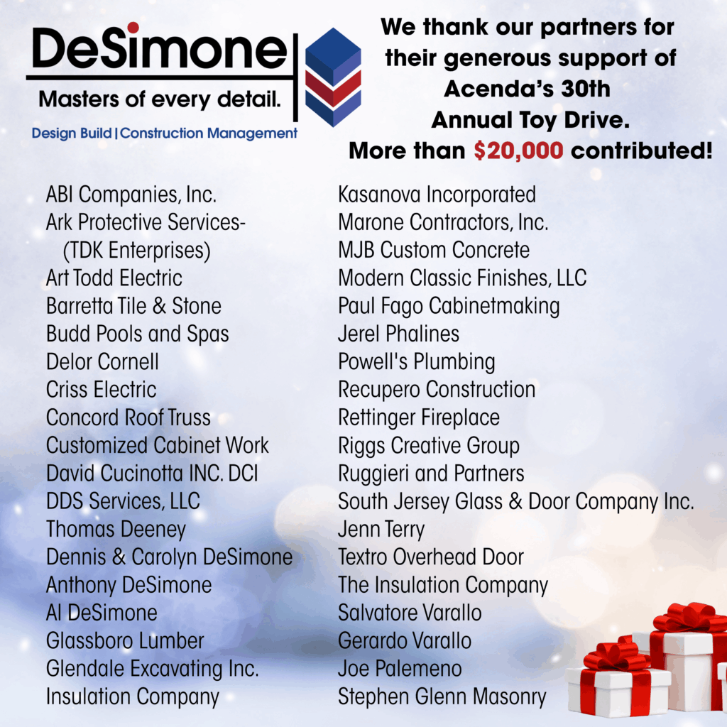 DeSimone extends sincere thanks to all who contributed this year, helping to make the season brighter for children and families throughout our communities. To learn more about Acenda Integrated Health, visit acendahealth.org.